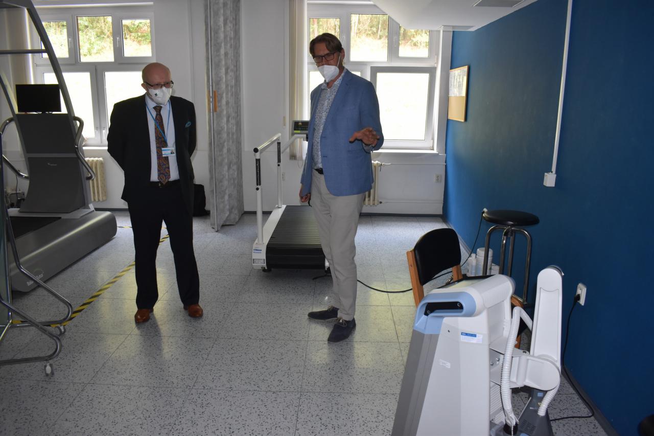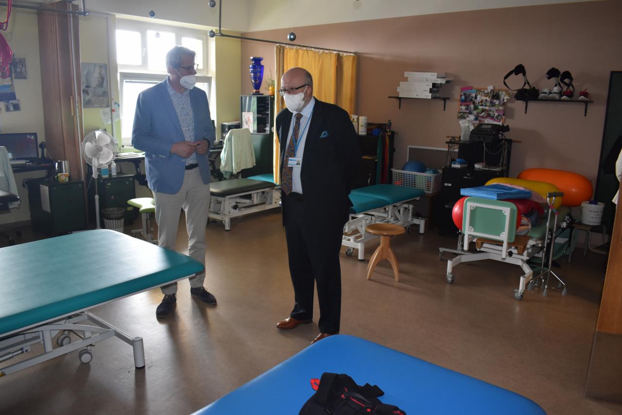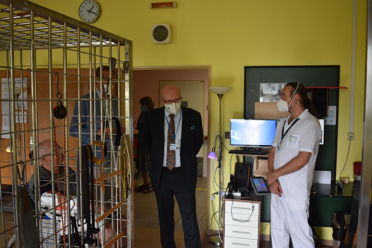30.8. proběhlo setkání ministra zdravotnictví prof. MUDr. Vlastimila Válka a ředitele odboru přímo řízených organizací MZ Ing. Jana Michálka a náměstkyně pro ekonomiku a zdravotní pojištění Ing. Heleny Rögnerové s vedením RÚ Kladruby, v zastoupení ing. Josefa Hendrycha, MBA, MUDr. Marie Kulakovské, Mgr. Evy Talpové, MBA a Mgr. Jakuba Pětiokého, MBA. Na programu bylo seznámení s problematikou rehabilitačního ústavu. Prezentace zkušeností RÚ s distanční terapií a telerehabilitací. Představení telerehabilitačních systémů v praxi a prezentace projektů zaměřených na individuální telerehabilitaci v domácím či jiném sociálním prostředí. Diskutována byla problematika péče o pacienty po kritických stavech, zajištění návaznosti a kontinuity akutní a následné lůžkové neurorehabilitační péče.