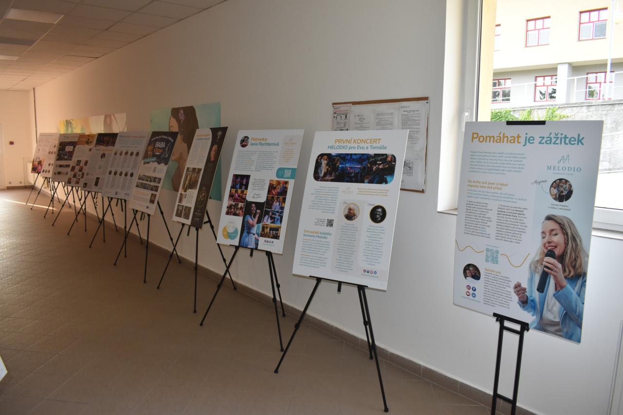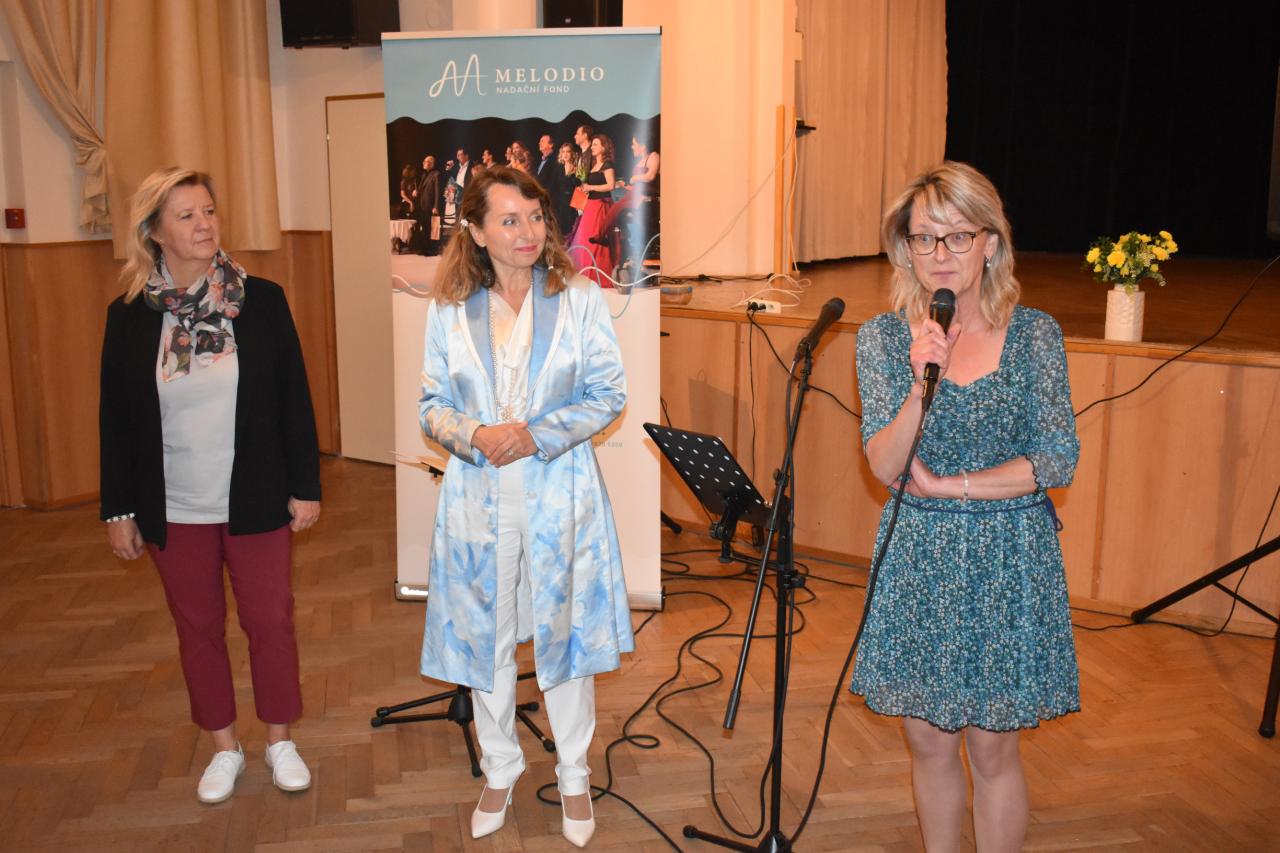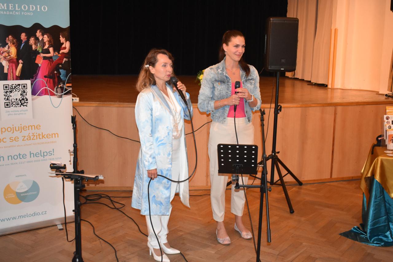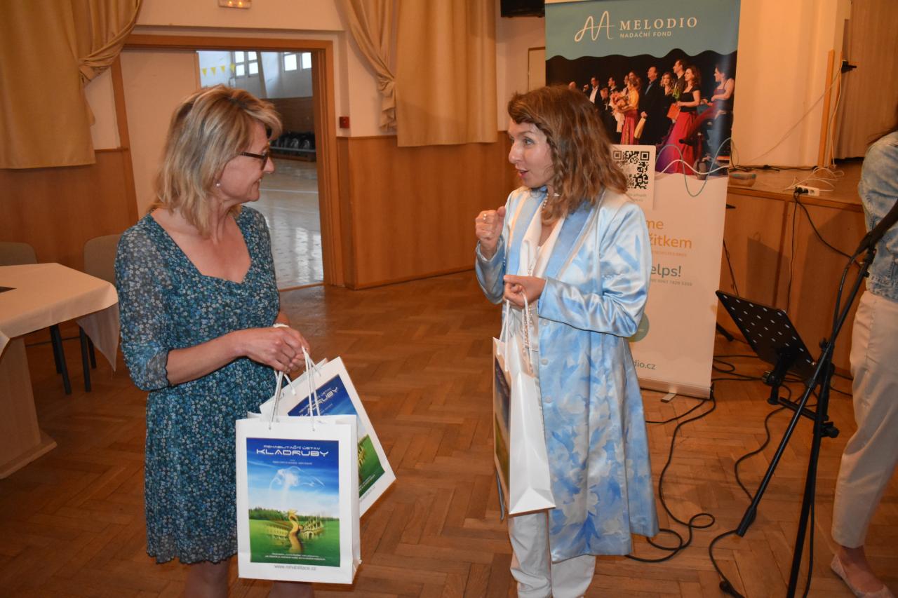 V pondělí 9. června v kinosále proběhlo slavnostní zahájení výstavy Nadačního fondu Melodio, která potrvá do 30. června. Melodio spojuje činnost se zážitkem. O činnostech nadačního fondu, o možnostech pomoci nám sdělila ředitelka, zpívající právnička Šimona Mašková, i z jejích úst zazněly líbivé písně. Dále byla přítomna Zdeňka Mlýnková, kurátorka výstavy. Libuše Petrovic, koučka, lektorka. Pomáhá lidem najít cestu k sobě, objevit schopnosti a vnitřní potenciál pro svůj rozvoj a růst, najít cíl a směr, stát se tvůrci vlastního života, který si přejí žít. Svým krásným zpěvem potěšila Kateřina Morozová, mladá inspirativní dáma, vyzařuje pohodu, neuvěřitelnou silou překonává životní překážky. Narodila se s genetickou poruchou, kvůli které může pořádně hýbat jen hlavou. Většinu věcí tak dělá pouze ústy, protože hybnost v horních a dolních končetinách má jen minimální. Vede navzdory tomu aktivní život. Hloubka a radost z prožitku byla viditelná, byl to velmi zajímavý, motivační a obohacující večer, za který s vděčností děkujeme.