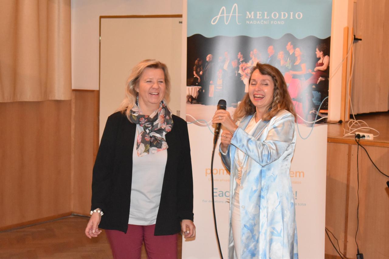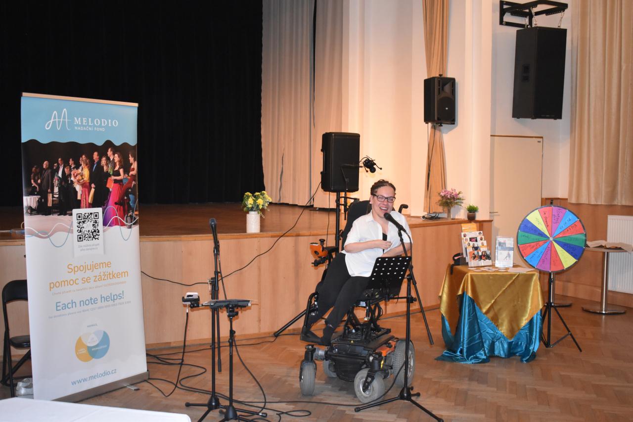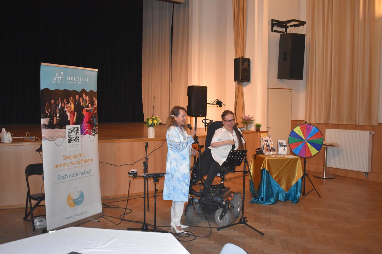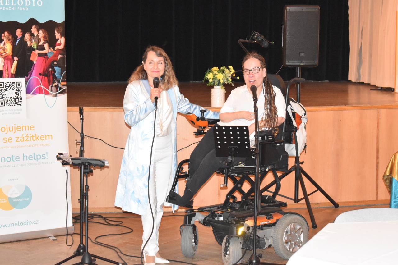 V pondělí 9. června v kinosále proběhlo slavnostní zahájení výstavy Nadačního fondu Melodio, která potrvá do 30. června. Melodio spojuje činnost se zážitkem. O činnostech nadačního fondu, o možnostech pomoci nám sdělila ředitelka, zpívající právnička Šimona Mašková, i z jejích úst zazněly líbivé písně. Dále byla přítomna Zdeňka Mlýnková, kurátorka výstavy. Libuše Petrovic, koučka, lektorka. Pomáhá lidem najít cestu k sobě, objevit schopnosti a vnitřní potenciál pro svůj rozvoj a růst, najít cíl a směr, stát se tvůrci vlastního života, který si přejí žít. Svým krásným zpěvem potěšila Kateřina Morozová, mladá inspirativní dáma, vyzařuje pohodu, neuvěřitelnou silou překonává životní překážky. Narodila se s genetickou poruchou, kvůli které může pořádně hýbat jen hlavou. Většinu věcí tak dělá pouze ústy, protože hybnost v horních a dolních končetinách má jen minimální. Vede navzdory tomu aktivní život. Hloubka a radost z prožitku byla viditelná, byl to velmi zajímavý, motivační a obohacující večer, za který s vděčností děkujeme.