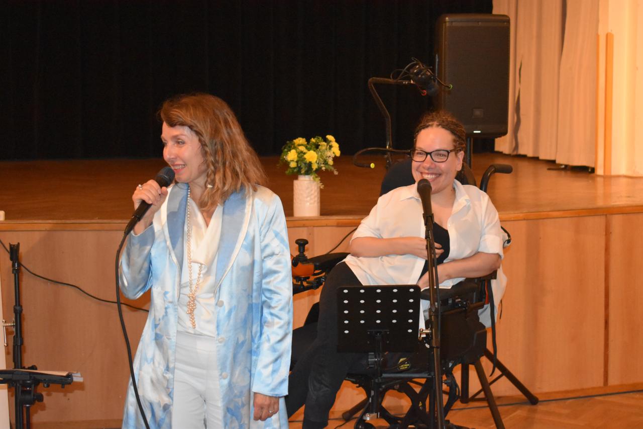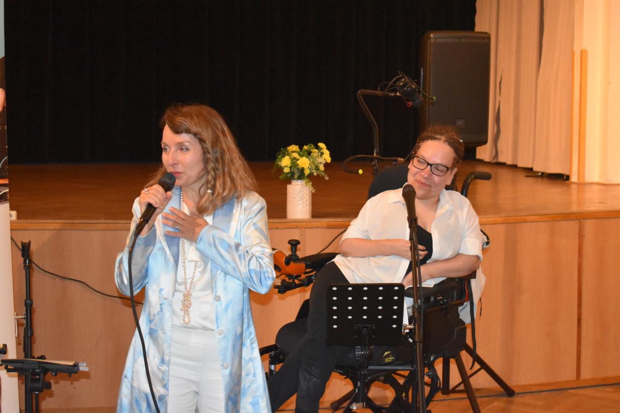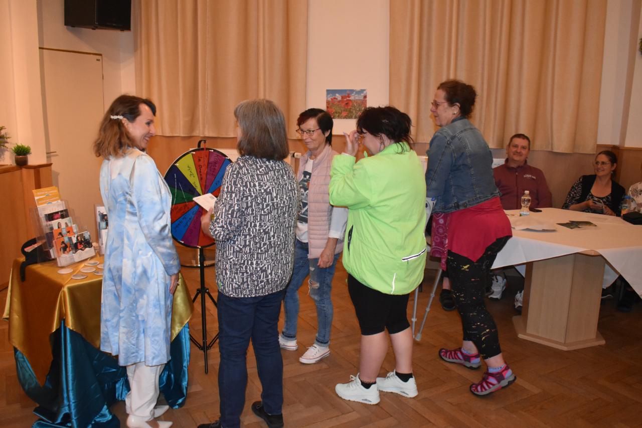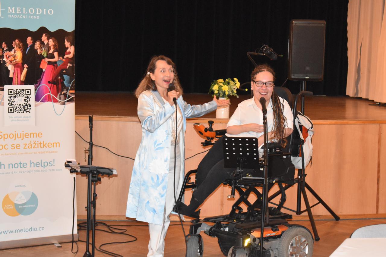 V pondělí 9. června v kinosále proběhlo slavnostní zahájení výstavy Nadačního fondu Melodio, která potrvá do 30. června. Melodio spojuje činnost se zážitkem. O činnostech nadačního fondu, o možnostech pomoci nám sdělila ředitelka, zpívající právnička Šimona Mašková, i z jejích úst zazněly líbivé písně. Dále byla přítomna Zdeňka Mlýnková, kurátorka výstavy. Libuše Petrovic, koučka, lektorka. Pomáhá lidem najít cestu k sobě, objevit schopnosti a vnitřní potenciál pro svůj rozvoj a růst, najít cíl a směr, stát se tvůrci vlastního života, který si přejí žít. Svým krásným zpěvem potěšila Kateřina Morozová, mladá inspirativní dáma, vyzařuje pohodu, neuvěřitelnou silou překonává životní překážky. Narodila se s genetickou poruchou, kvůli které může pořádně hýbat jen hlavou. Většinu věcí tak dělá pouze ústy, protože hybnost v horních a dolních končetinách má jen minimální. Vede navzdory tomu aktivní život. Hloubka a radost z prožitku byla viditelná, byl to velmi zajímavý, motivační a obohacující večer, za který s vděčností děkujeme.