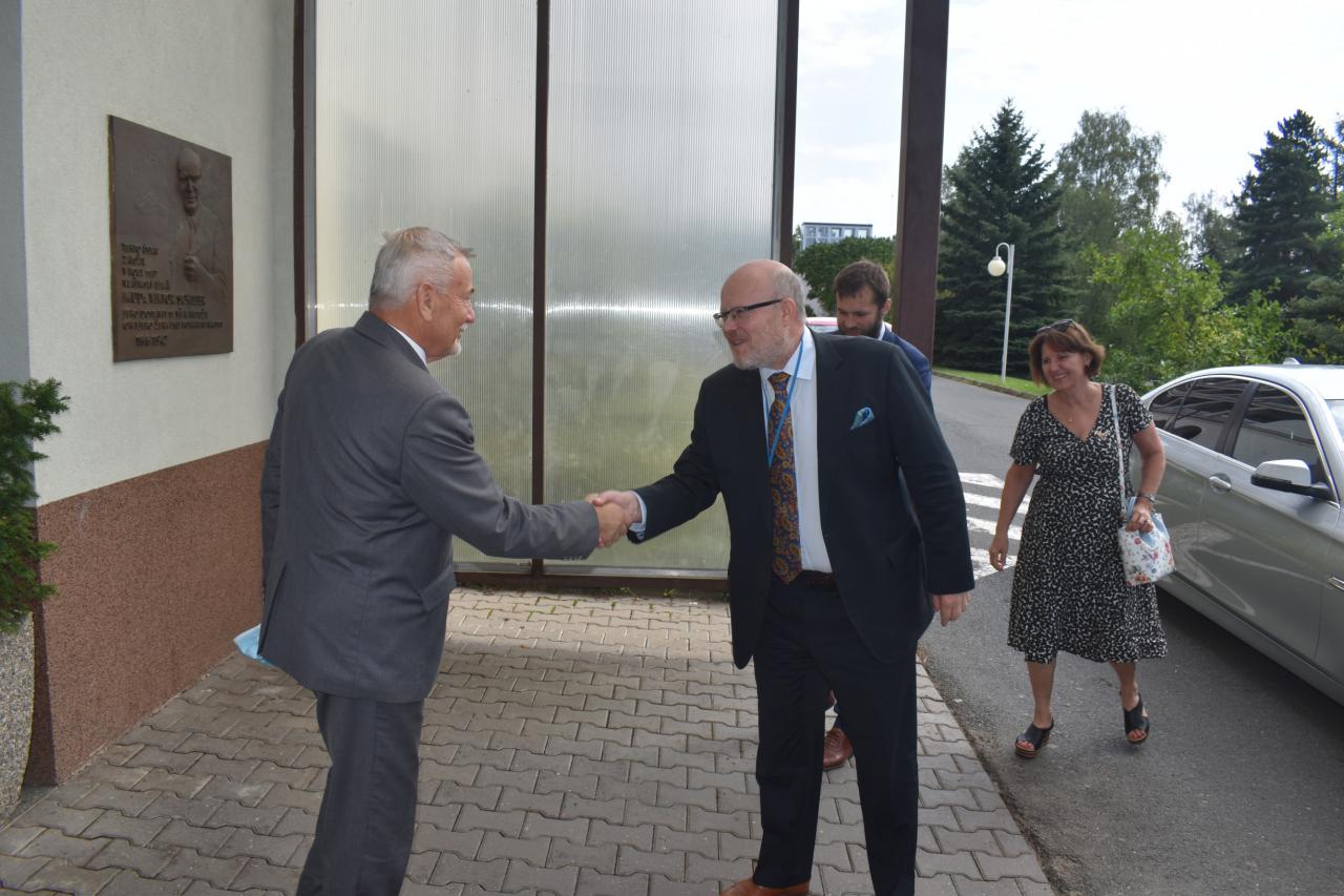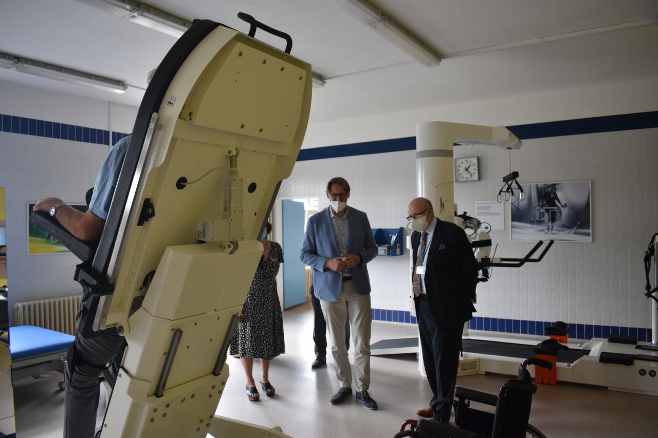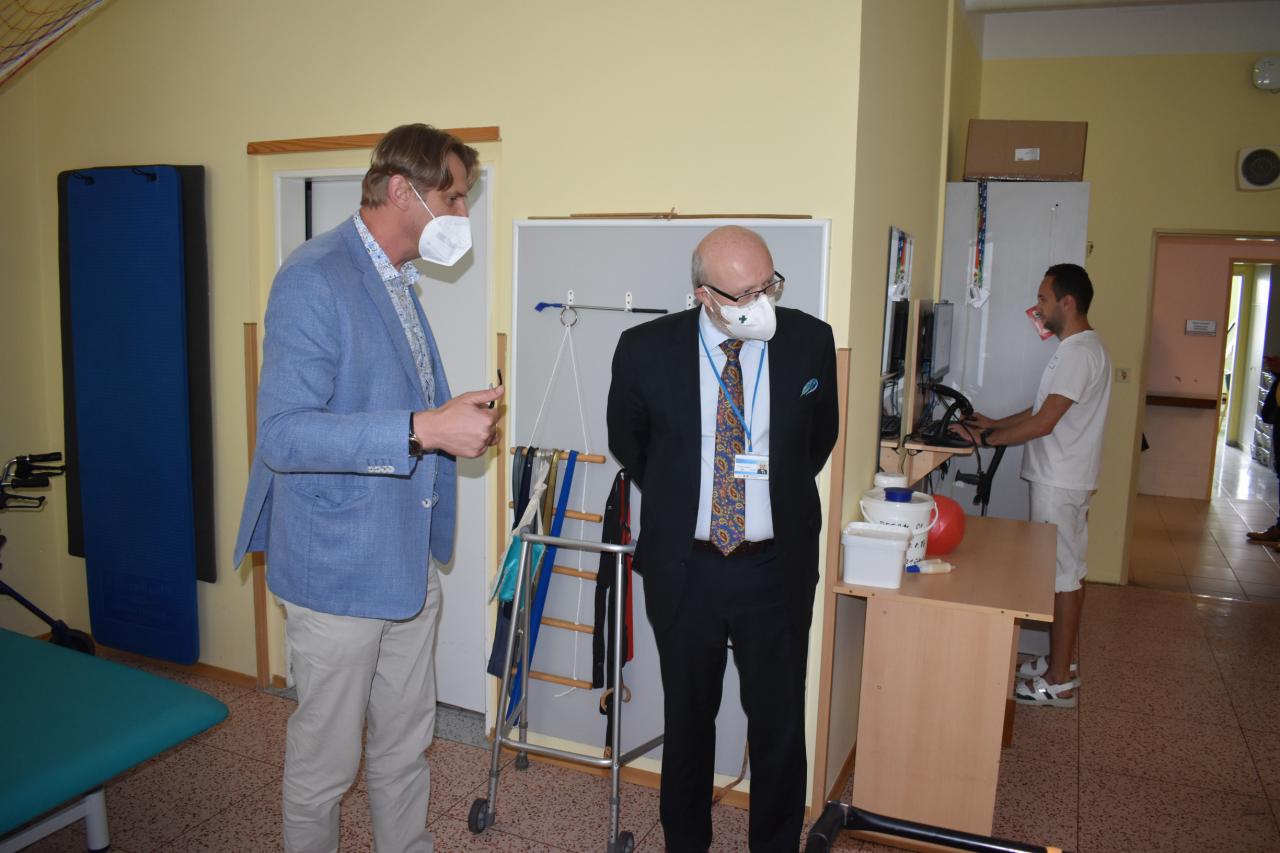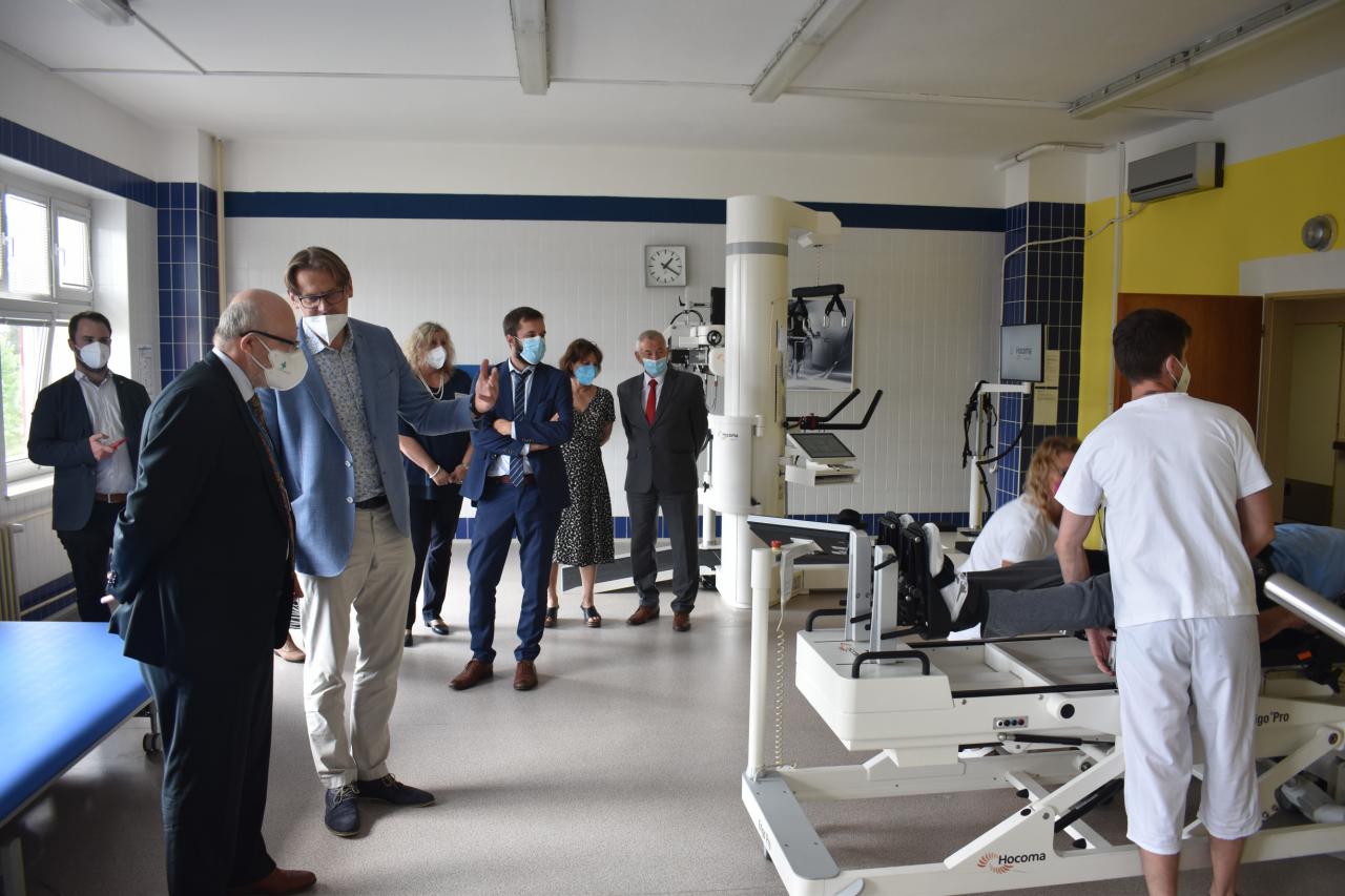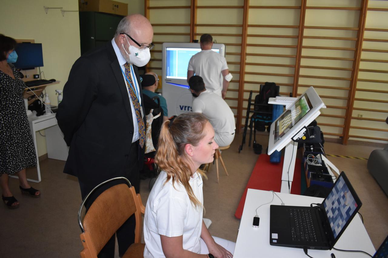 30.8. proběhlo setkání ministra zdravotnictví prof. MUDr. Vlastimila Válka a ředitele odboru přímo řízených organizací MZ Ing. Jana Michálka a náměstkyně pro ekonomiku a zdravotní pojištění Ing. Heleny Rögnerové s vedením RÚ Kladruby, v zastoupení ing. Josefa Hendrycha, MBA, MUDr. Marie Kulakovské, Mgr. Evy Talpové, MBA a Mgr. Jakuba Pětiokého, MBA. Na programu bylo seznámení s problematikou rehabilitačního ústavu. Prezentace zkušeností RÚ s distanční terapií a telerehabilitací. Představení telerehabilitačních systémů v praxi a prezentace projektů zaměřených na individuální telerehabilitaci v domácím či jiném sociálním prostředí. Diskutována byla problematika péče o pacienty po kritických stavech, zajištění návaznosti a kontinuity akutní a následné lůžkové neurorehabilitační péče.